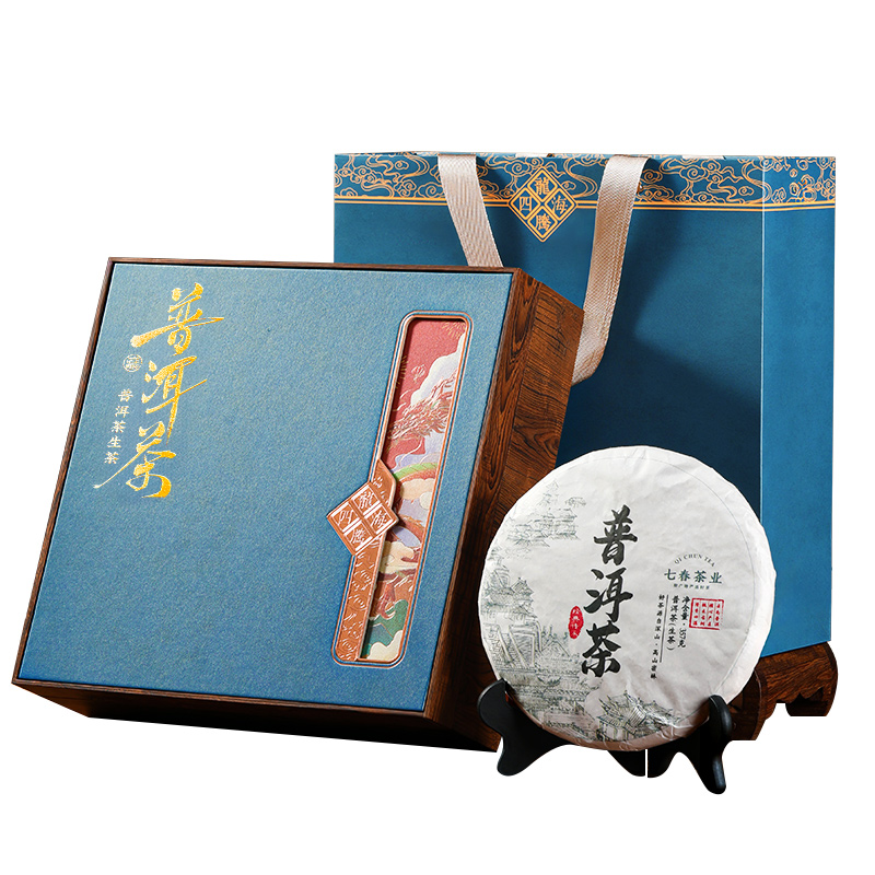 云南普洱 茶叶礼盒357g珍藏高档古树生茶饼节日送老丈人长辈礼物