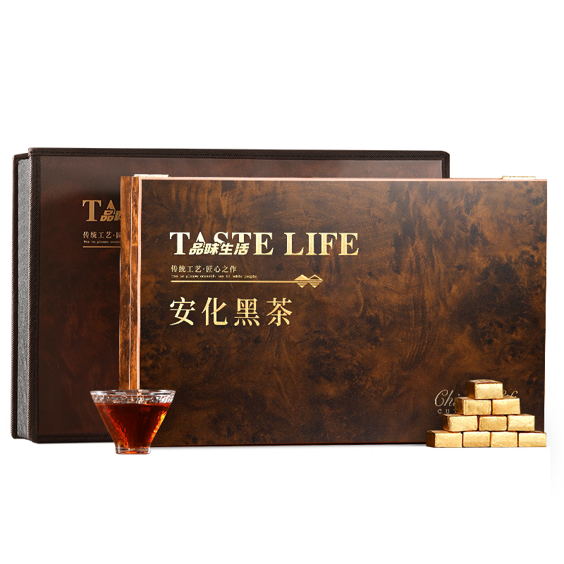 安化黑茶 小金砖茶叶礼盒黑砖360g金花茯砖茶熟茶新年送长辈礼