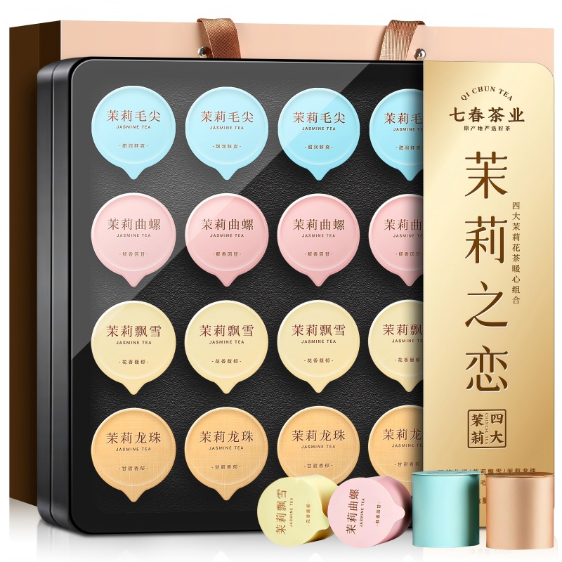 茉莉花茶龙珠飘雪小罐装茶叶礼盒花草茶180g过年送长辈礼物品