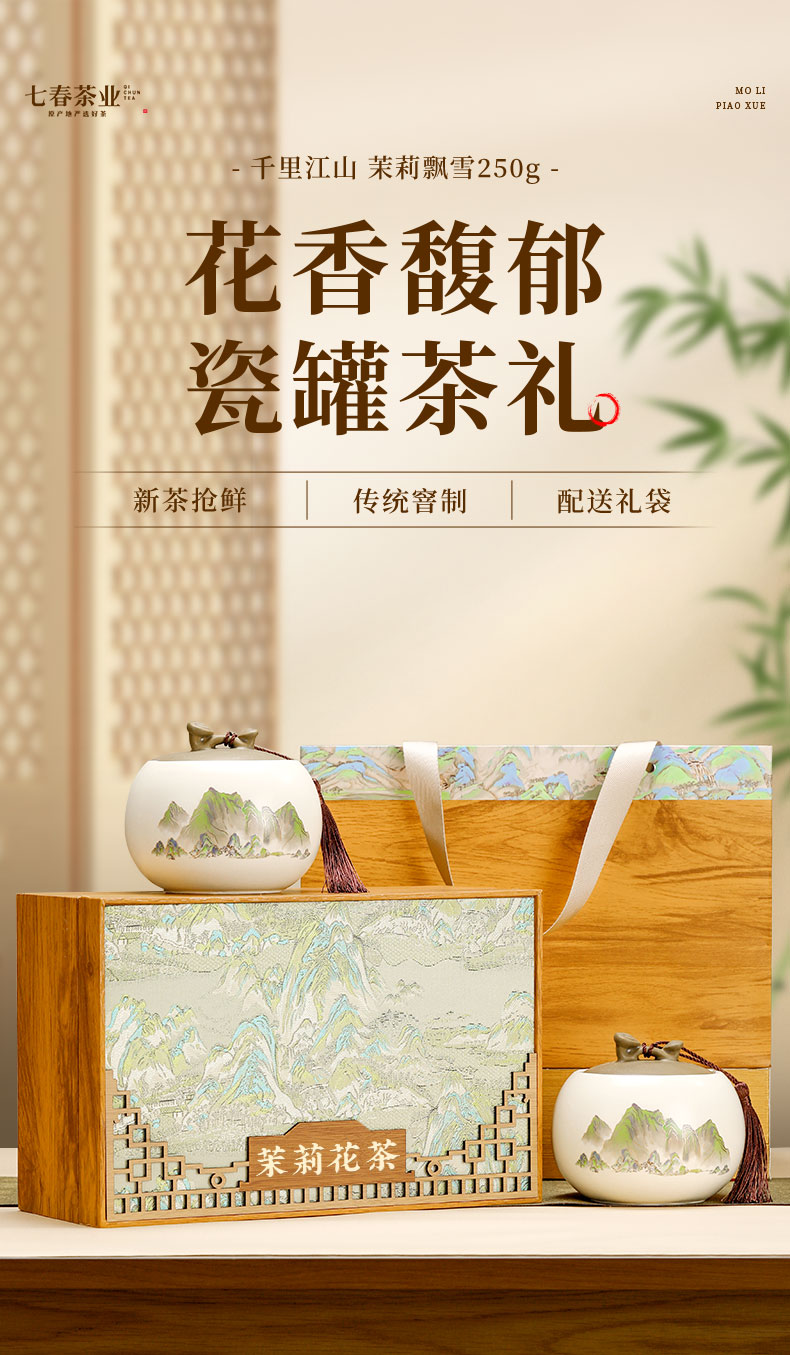 茉莉花茶礼盒飘雪茶叶礼盒茉莉绿茶叶过年送老丈人礼物礼品250g