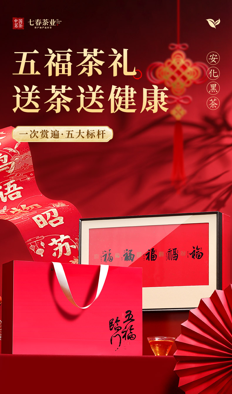 五福年货礼盒 安化黑茶金花茯砖天尖共160g千两黑砖送长辈老丈人